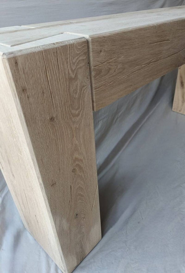 Deze rustieke eiken beam sidetable, met afmetingen van 160x30x80 cm en poten en blad van een dikte van 19cm, is het pronkstuk van elke ruimte. Het geborstelde hout en de natuurlijke kleur geven deze sidetable een warme, stijlvolle uitstraling die perfect past in elk interieur. Of je nu je hal, woonkamer of eetkamer wilt verfraaien, deze sidetable voegt met zijn tijdloze charme en authentieke afwerking een vleugje elegantie en karakter toe aan je woonruimte. Ideaal voor wie op zoek is naar een combinatie van functionaliteit en design in een meubelstuk van hoge kwaliteit.